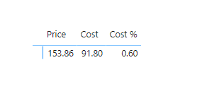 Using the same data from our starting example but removing the category will aggregate the results to show us what the total % cost is for all items sold.